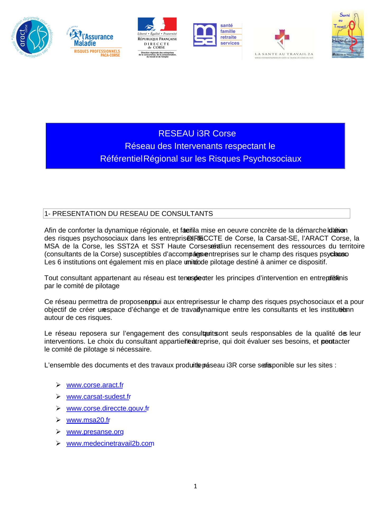 Afin de conforter la dynamique régionale, et de faciliter la mise en oeuvre concrète de la démarche d’évaluation des risques psychosociaux dans les entreprises, la DIRECCTE de Corse, la Carsat Sud-Est, l’ARACT Corse, la MSA de la Corse, les SST2A et SST Haute Corse réalisent un recensement des ressources du territoire susceptibles d’accompagner les entreprises sur le champ des risques psychosociaux.