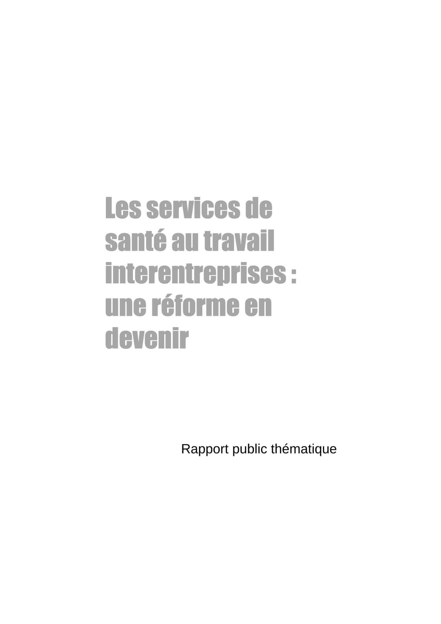 Les difficultés qu'éprouvent les services interentreprises pour assurer l'ensemble de leurs missions, notamment causées par la pénurie de médecins du travail, sont également soulevées. De même, la Cour pointe du doigt le manque de pouvoir de surveillance de l'Etat, et le besoin de revoir les modes de financement des services.