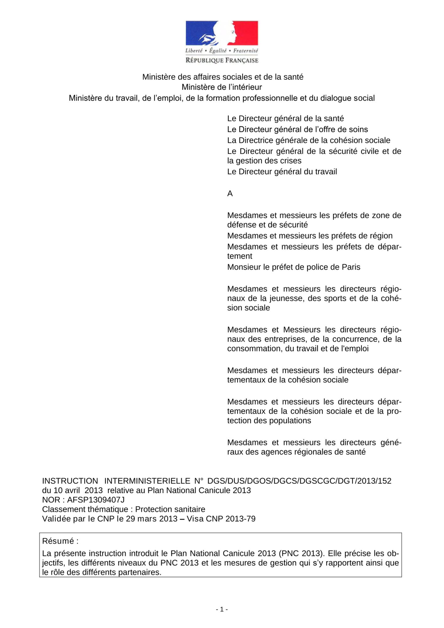 Pour en savoir plus, consulter l'Instruction ministérielle du 10 avril 2013 relative au plan national canicule 2013 (téléchargeable ci-dessous), et notamment l'Annexe 1 (fiches mesures), pages 11 et 12, et l'Annexe 2 (recommandations canicule), pages 20 à 23.