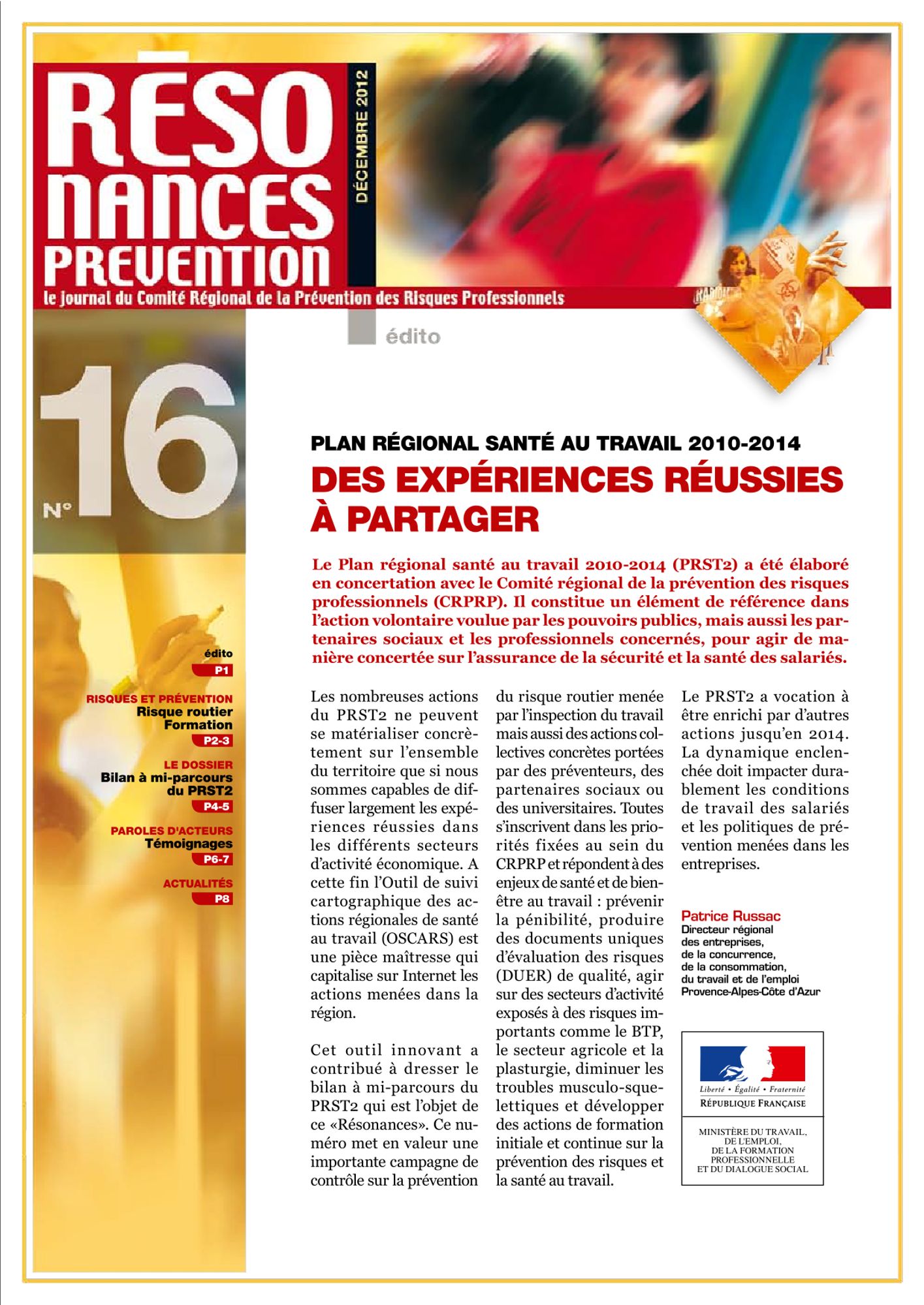 Le 16ème numéro de Résonances Prévention, le journal du Comité Régional de la Prévention des Risques Professionnels (CRPRP) est en ligne!