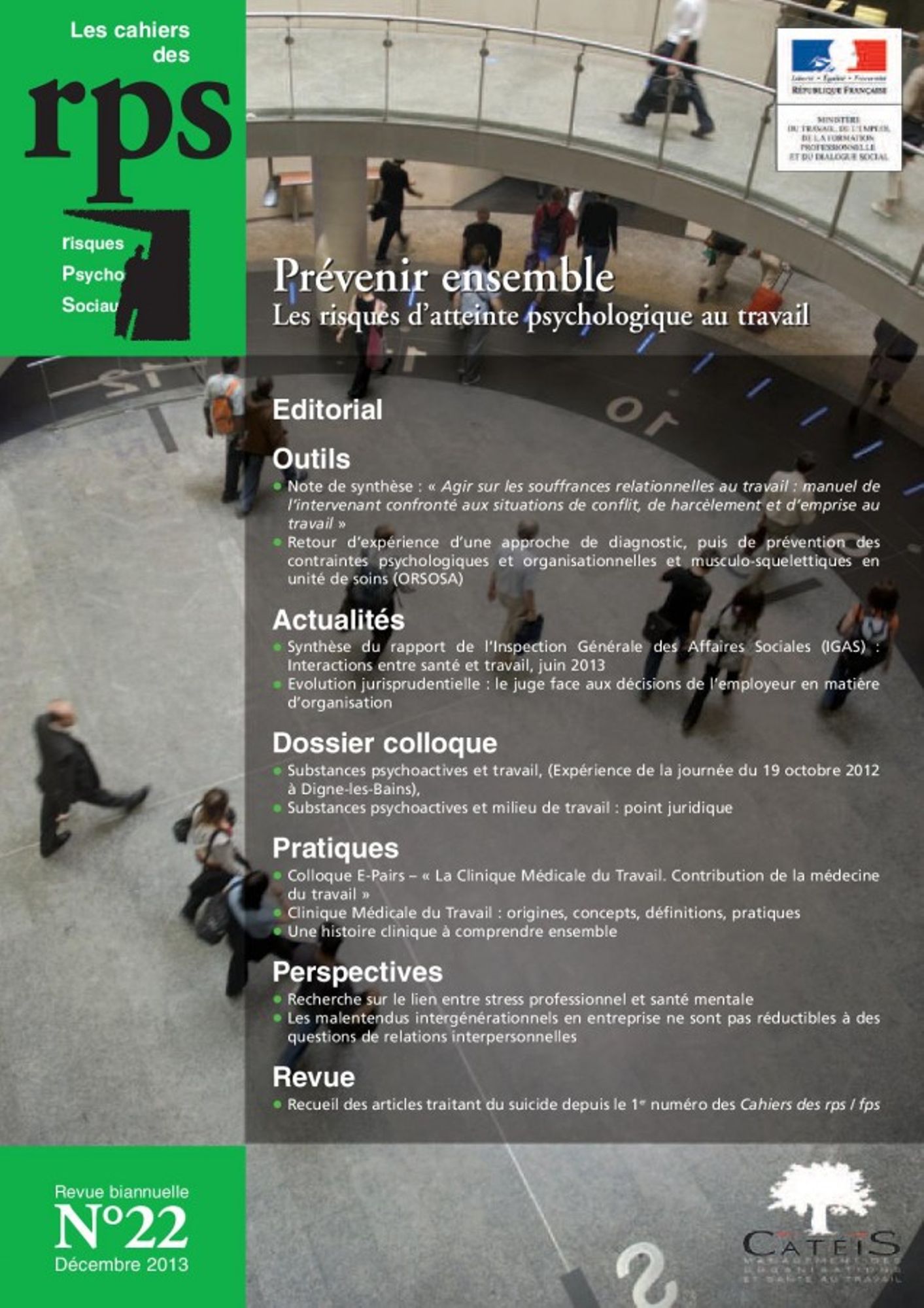 Le dernier numéro des "Cahiers des RPS" (risques psycho-sociaux) vient de paraître. Publiée deux fois par an, cette revue est éditée avec le concours de la DIRECCTE Paca.