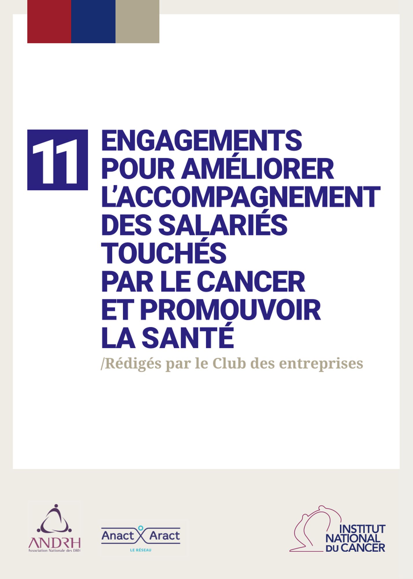 Élaborée dans le cadre du Club des entreprises, cette charte propose aux entreprises signataires onze engagements pour améliorer le maintien et le retour dans l'emploi des salariés touchés par le cancer.