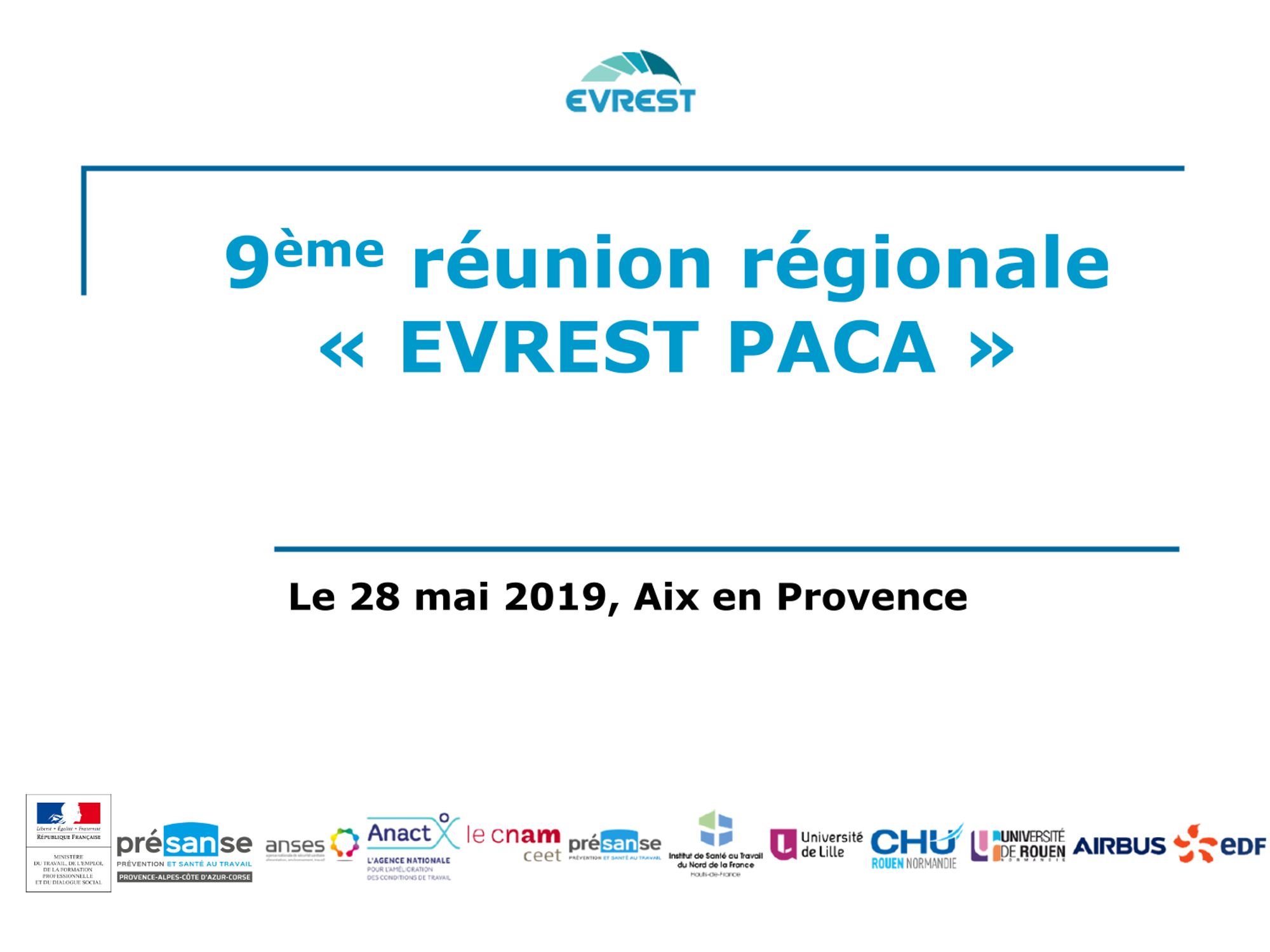 Le 28 mai dernier s'est déroulée la réunion annuelle régionale d'EVREST (EVolutions et RElations en Santé au Travail), à Aix-en-Provence. A cette occasion, près de 25 professionnels engagés dans ce dispositif ont échangé sur l'avancement de l'observatoire et le recueil de données en Santé Travail.