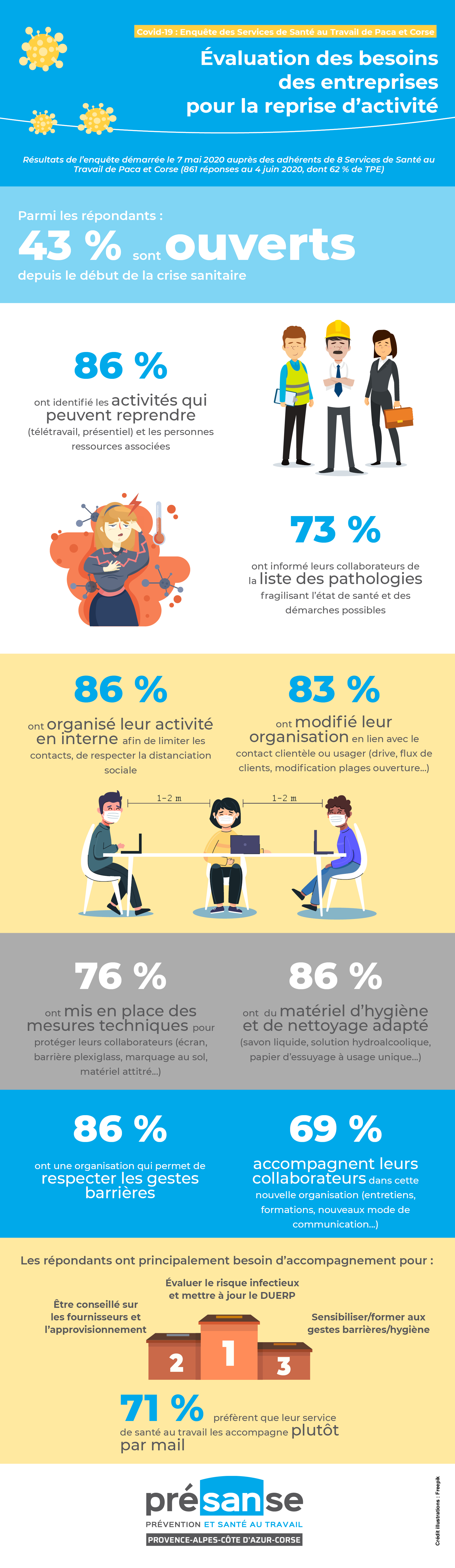 Après une première enquête sur l'impact de la crise sanitaire sur l'activité des entreprises, 8 services de santé au travail de Présanse Paca-Corse ont interrogé leurs adhérents sur leurs besoins à la sortie du confinement et dans leur reprise d'activité.