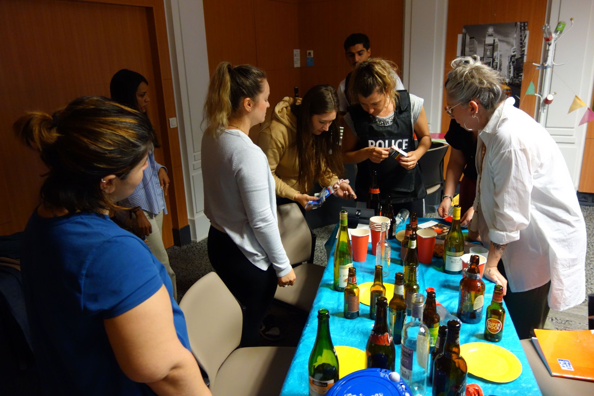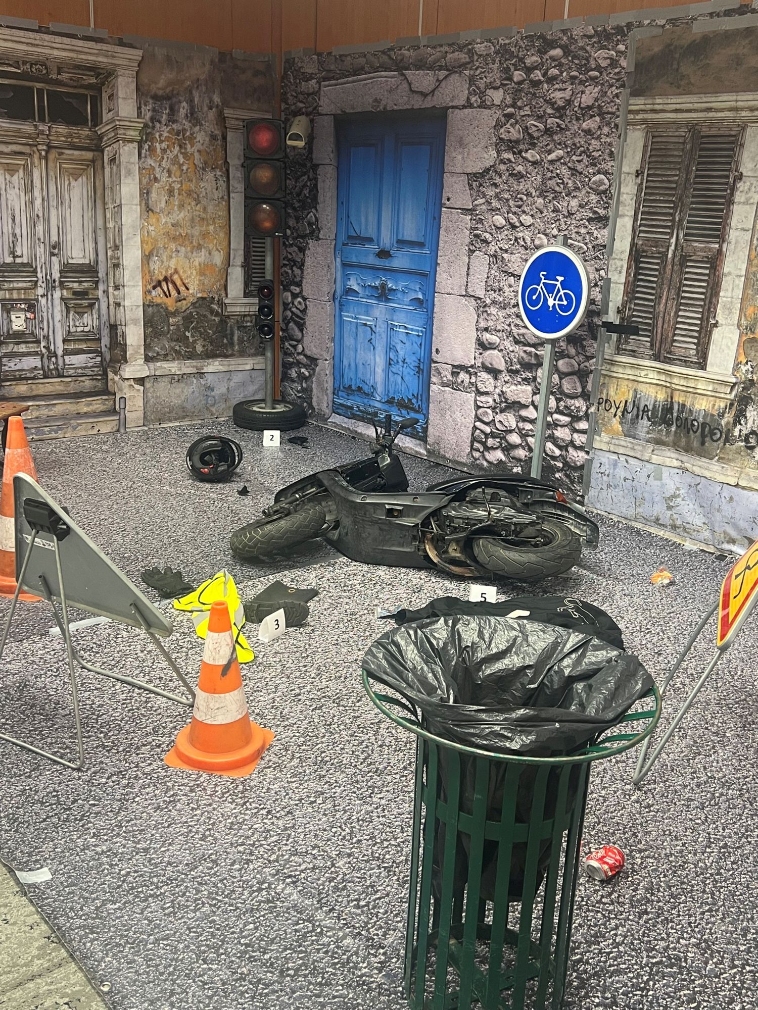 Scène après scène, chambre… boîte de nuit… lieu de l’accident et commissariat, les enquêteurs (les adhérents de l'AMETRA06 😊), ont recherché les indices pouvant expliquer l’accident. C’est là que commence la sensibilisation : risque alcool, drogues, téléphone, vitesse…