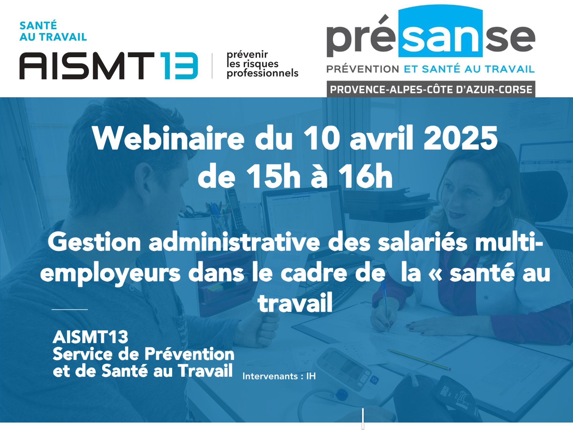 Le 10 avril 2025, l'AISMT 13 a animé un webinaire sur la thématique du suivi individuel de l'état de santé des salariés en multi-emplois. Cette visio était organisée en partenariat avec la Fédération des entreprises de propreté (FEP) du Sud-est.