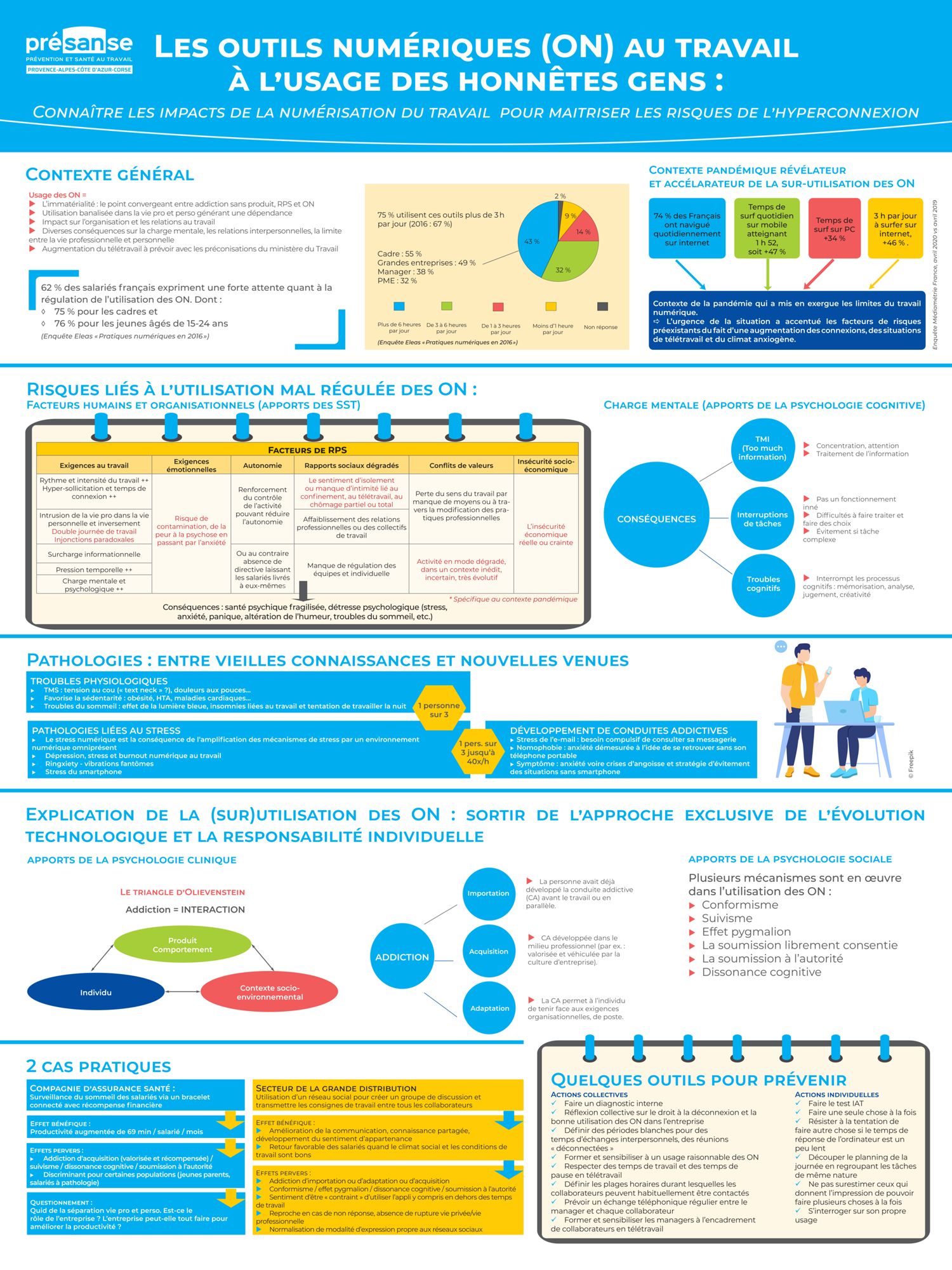 Les outils numériques font partie de notre paysage personnel et professionnel. Ils ont permis de grandes avancées dans le développement des entreprises et de leurs activités (meilleure réactivité, développement de marché, etc.). Cependant, comme tout outil, il convient d’analyser leur utilisation et de mettre en place des moyens de prévention primaire et secondaire.