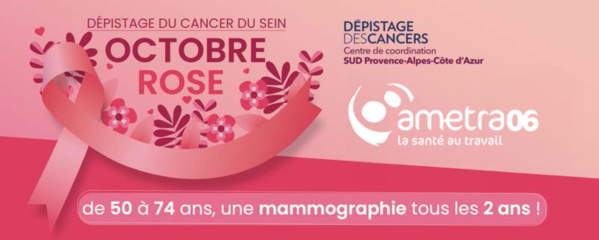 Dans le cadre d’un partenariat avec le Centre Régional de Coordination du Dépistage des Cancers (CRCDC Sud Paca), l’AMETRA06 soutient activement la campagne Octobre Rose 2024.