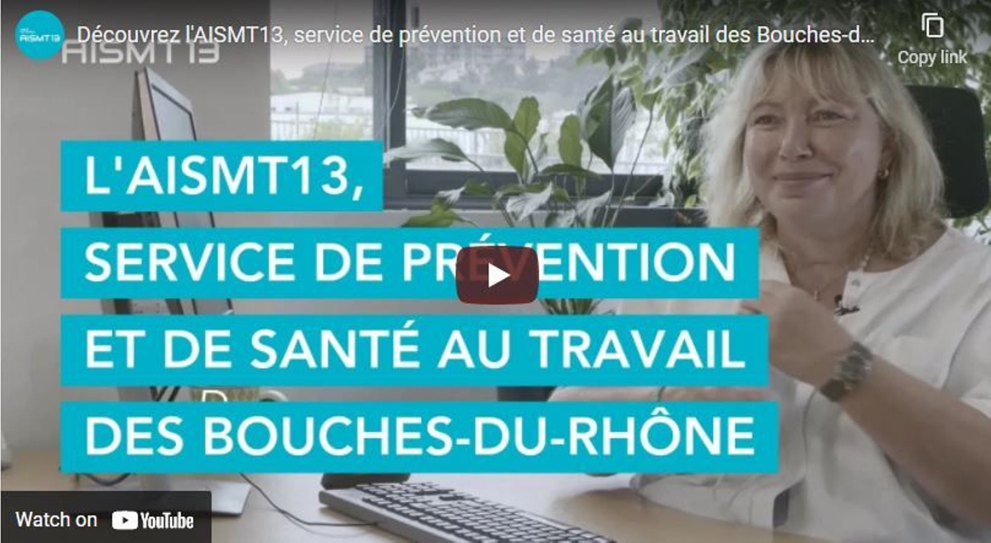 L'AISMT 13 suit 12 500 entreprises adhérentes représentant plus de 160 000 salariés. En novembre, ce service de prévention et de santé au travail a mis en ligne une vidéo de 2'36'', réalisée avec le prestataire Immedias, pour présenter ses missions et ses actions.
