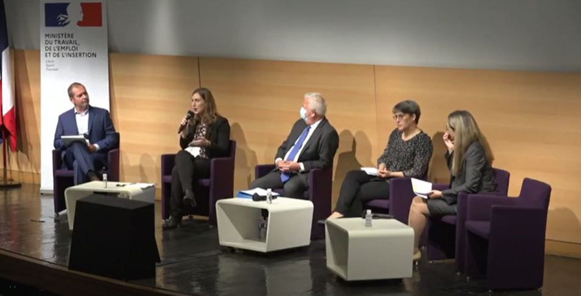 Une matinée d’échanges consacrée à la loi pour renforcer la prévention en santé au travail promulguée le 2 août 2021 a été organisée le 20 septembre 2021 par Elisabeth Borne, ministre du Travail, de l’Emploi et de l’Insertion, et Laurent Pietraszewski, secrétaire d’État chargé des Retraites et de la Santé au travail. Plus de 1400 personnes ont suivi ce séminaire en direct sur Internet et en présentiel au ministère des Solidarités et de la Santé.