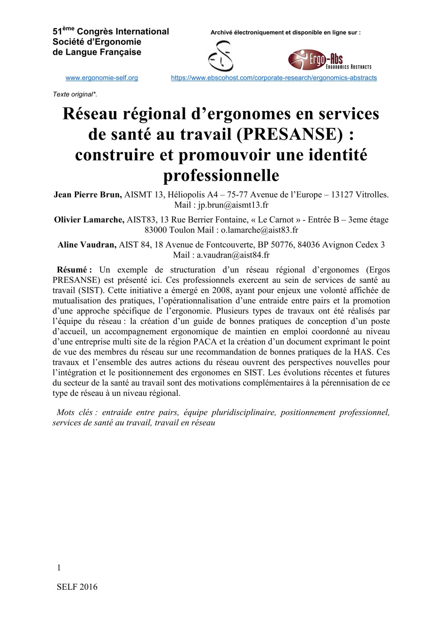 Le réseau des ergonomes des SPSTI Paca-Corse