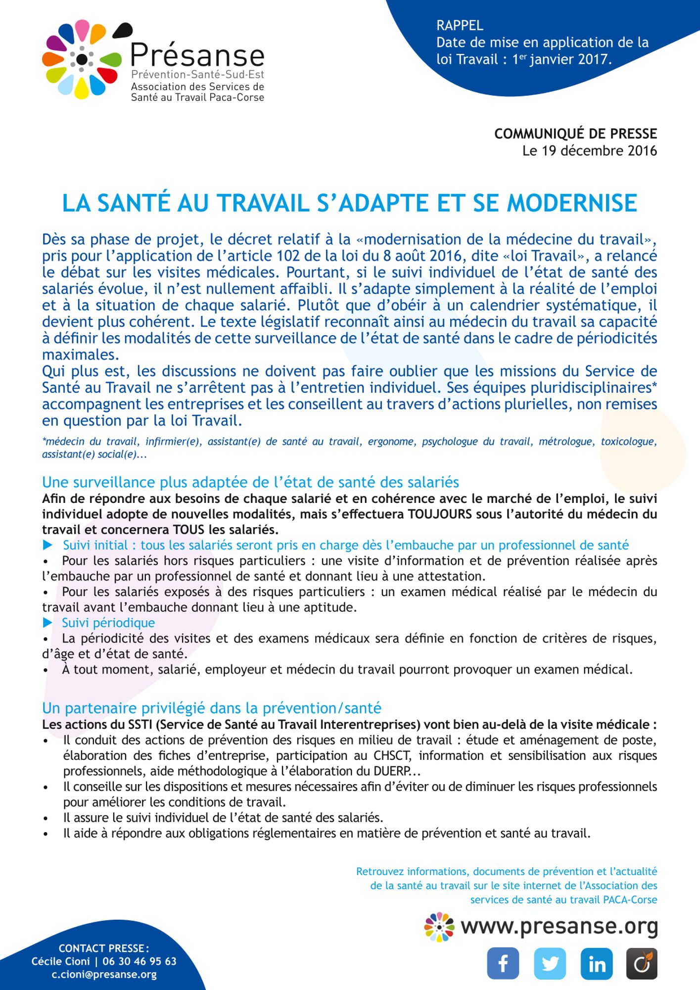Dès sa phase de projet, le décret relatif à la "modernisation de la médecine du travail", pris pour l'application de l'article 102 de la loi du 8 août 2016, dite "loi Travail", a relancé le débat sur les visites médicales. Pourtant, si le suivi individuel de l'état de santé des salariés évolue, il n'est nullement affaibli. Il s'adapte simplement à la réalité de l'emploi et à la situation de chaque salarié. Plutôt que d'obéir à un calendrier systématique, il devient plus cohérent. Le texte législatif reconnaît ainsi au médecin du travail sa capacité à définir les modalités de cette surveillance de l'état de santé dans le cadre de périodicités maximales. Qui plus est, les discussions ne doivent pas faire oublier que les missions du Service de Santé au Travail ne s'arrêtent pas à l'entretien individuel. Ses équipes pluridisciplinaires accompagnent les entreprises et les conseillent au travers d'actions plurielles, non remises en question par la loi Travail.