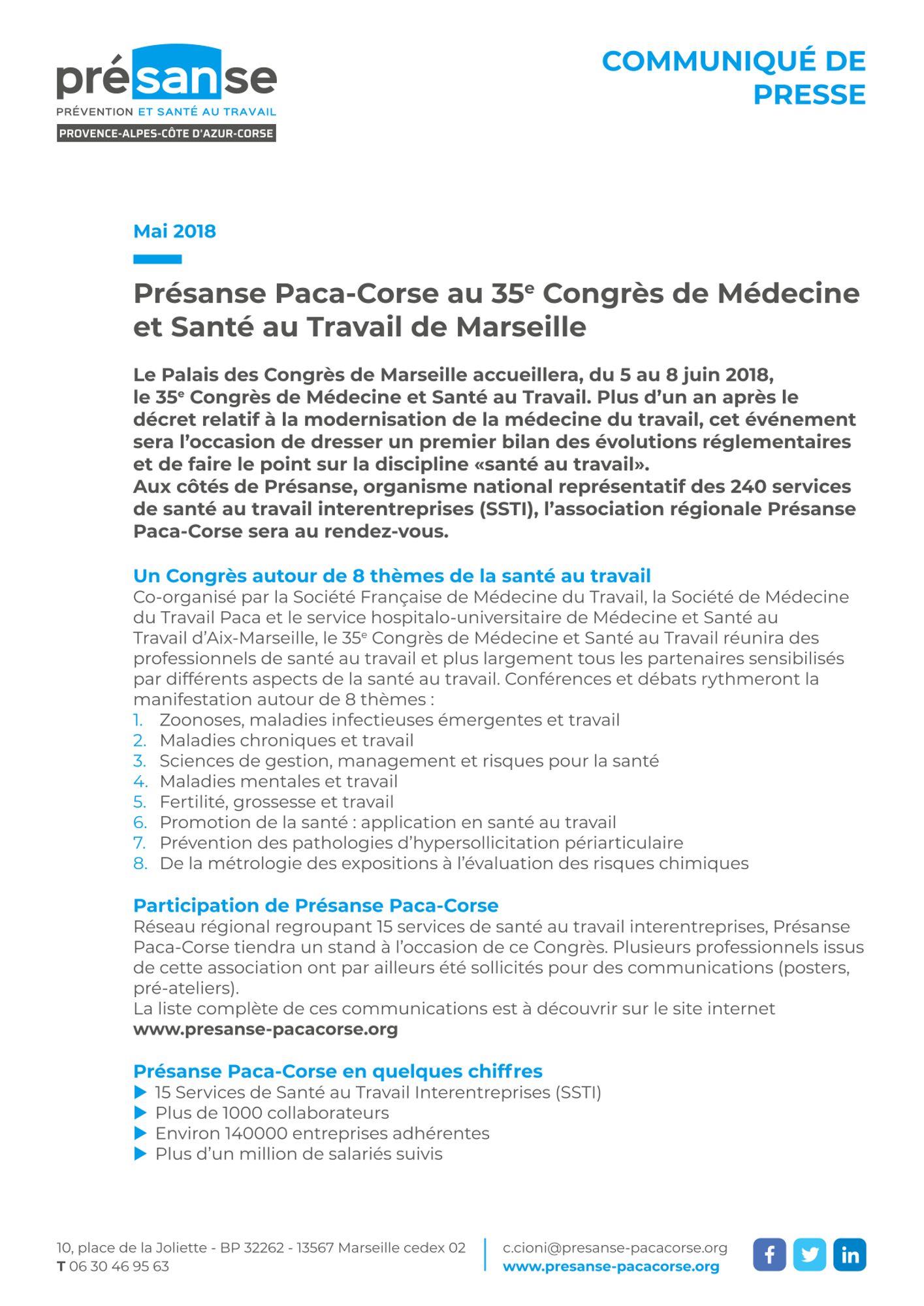 Présanse Paca-Corse au 35e Congrès de Médecine et Santé au Travail de Marseille
