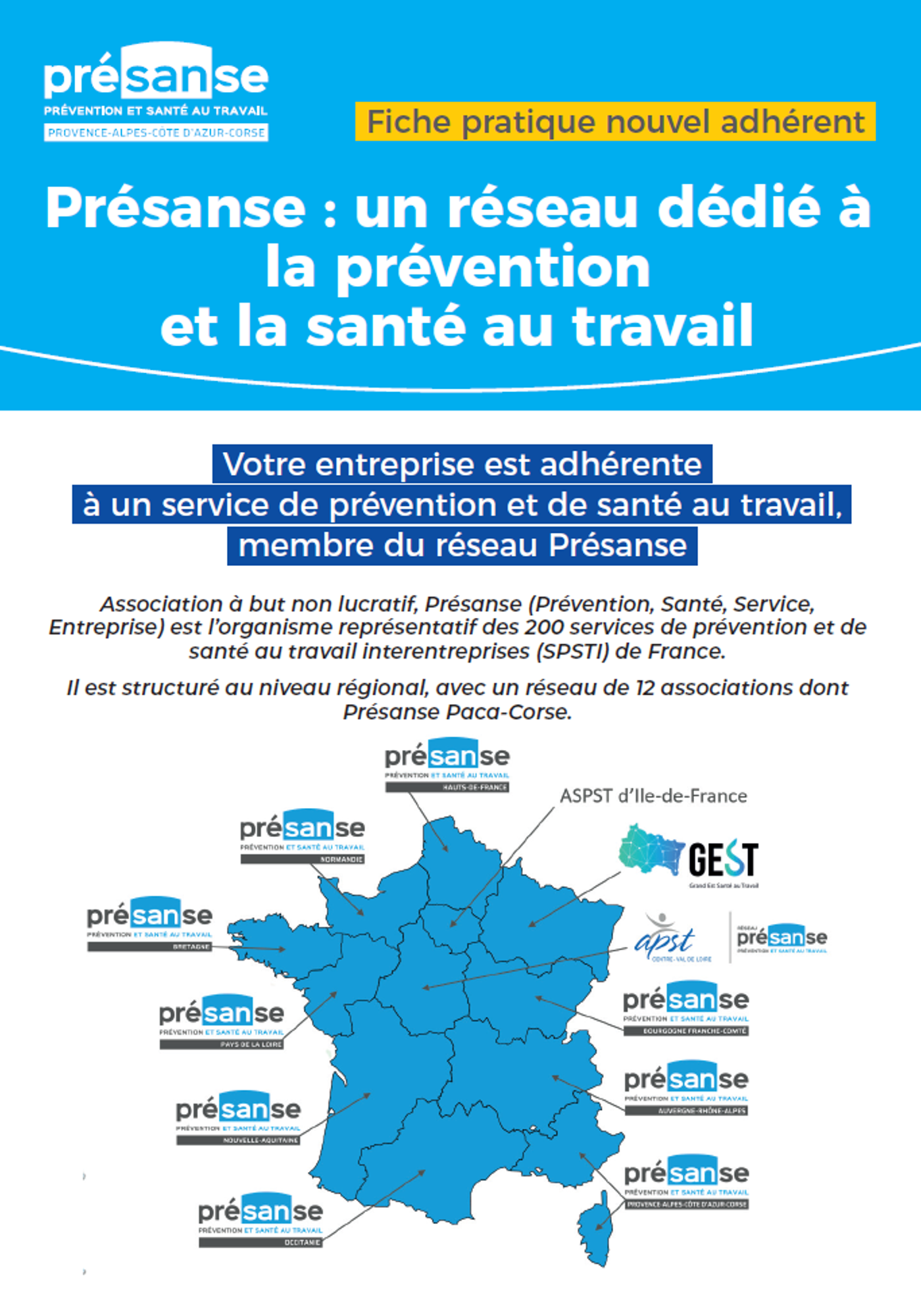Votre entreprise est adhérente à un service de prévention et de santé au travail, membre du réseau Présanse. Association à but non lucratif, Présanse (Prévention, Santé, Service, Entreprise) est l’organisme représentatif des 200 services de prévention et de santé au travail interentreprises (SPSTI) de France.
