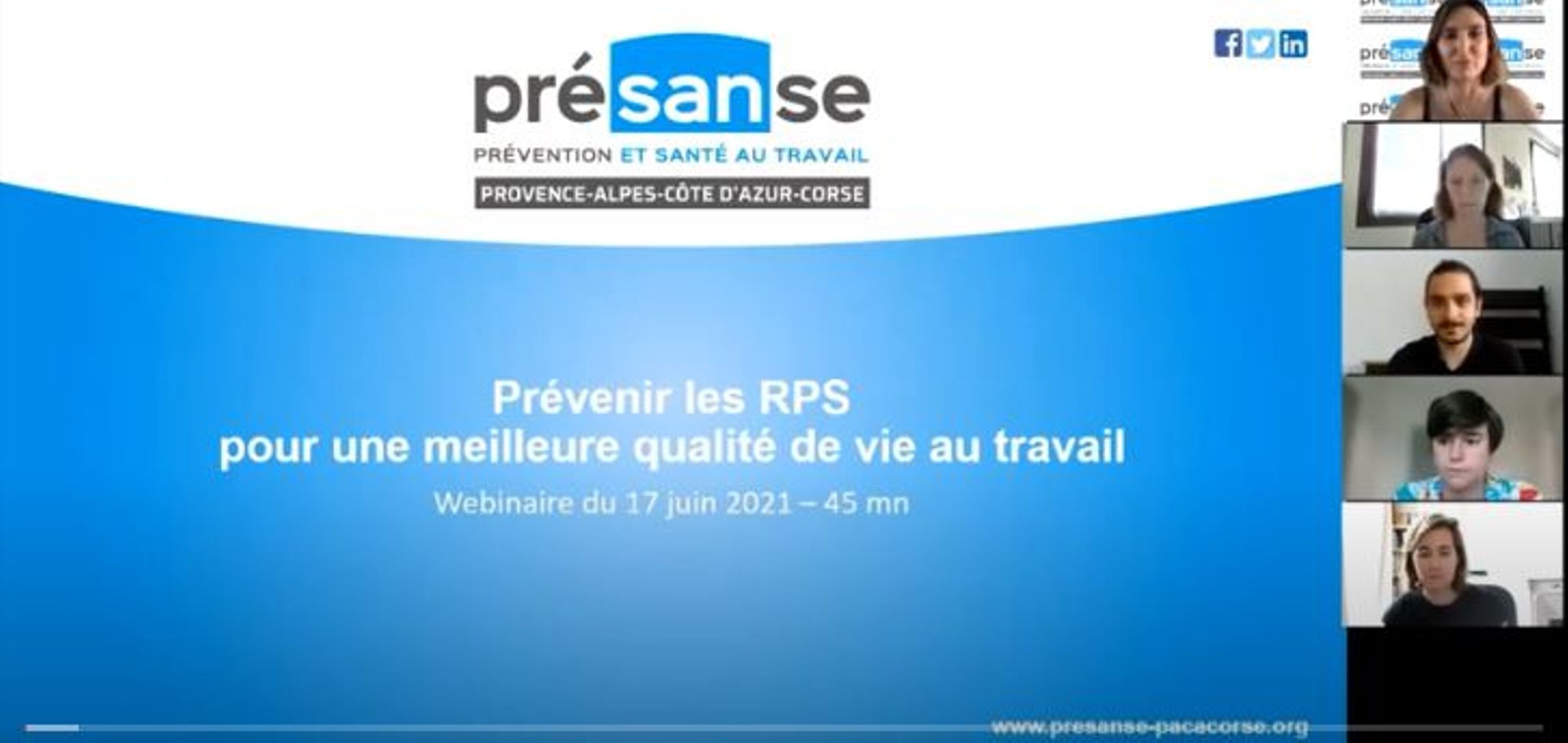 Le 17 juin 2021, les services de santé au travail de Présanse Paca-Corse ont proposé un webinaire commun sur la prévention des risques psycho-sociaux (RPS). On parle en effet de plus en plus de risques psycho-sociaux (RPS), mais les entreprises ne savent pas toujours de quoi il s'agit et comment les prévenir.